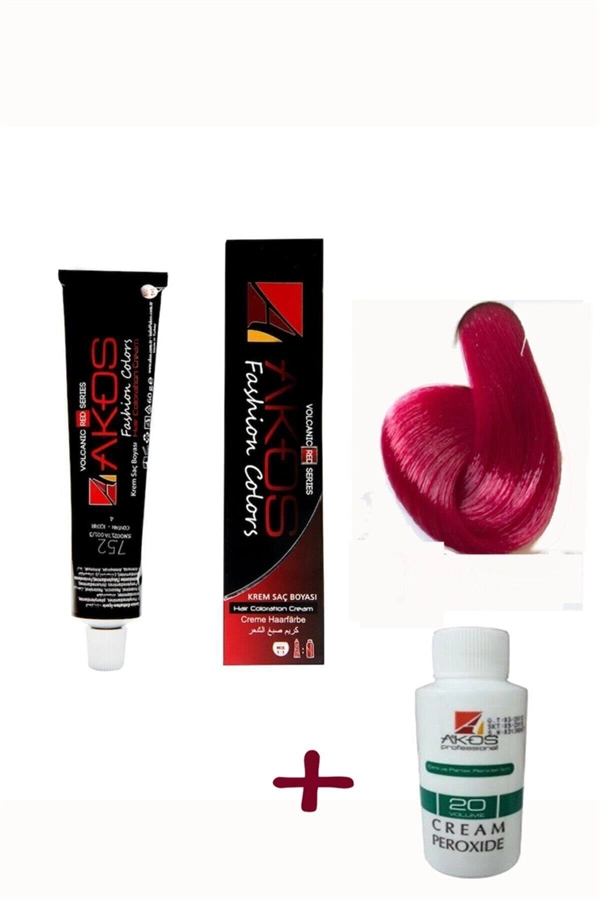 Akos Çilek Kızılı Saç Boyası 7.52 3 Adet + 3 Adet Oksidan